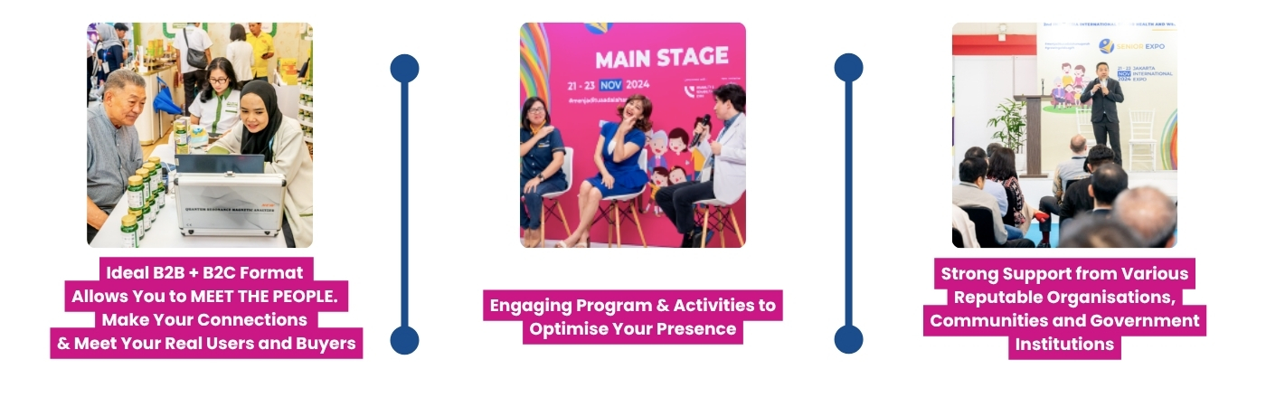 The event is designed to be a mix between B2B and B2C to fully cover the entire stakeholders. In addition to the Exhibition and Conference, a line up of value-packed activities are planned to enhance the experience of participating and attending SENIOR EXPO.
